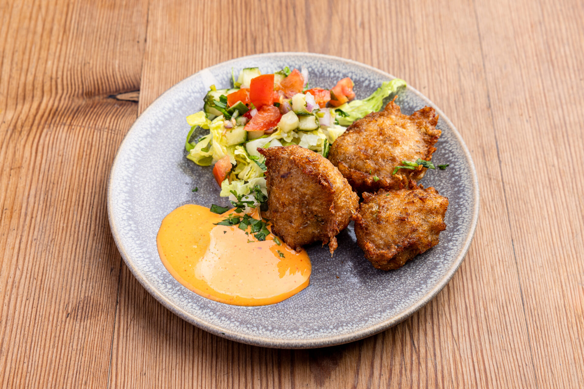 Salted cod mixed in a batter of fresh herbs and spices served with a zesty lime and Scotch bonnet aioli dip. (Allergens: fish, gluten)